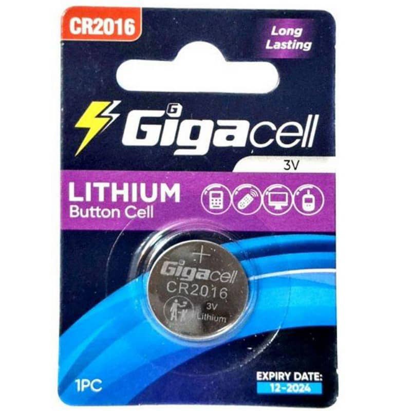 باتری سکه ای گیگاسل Gigacell مدل CR2016- ولتاژ 3 ولت لیتیومی : جریان پایدار برای دستگاههای کممصرف.