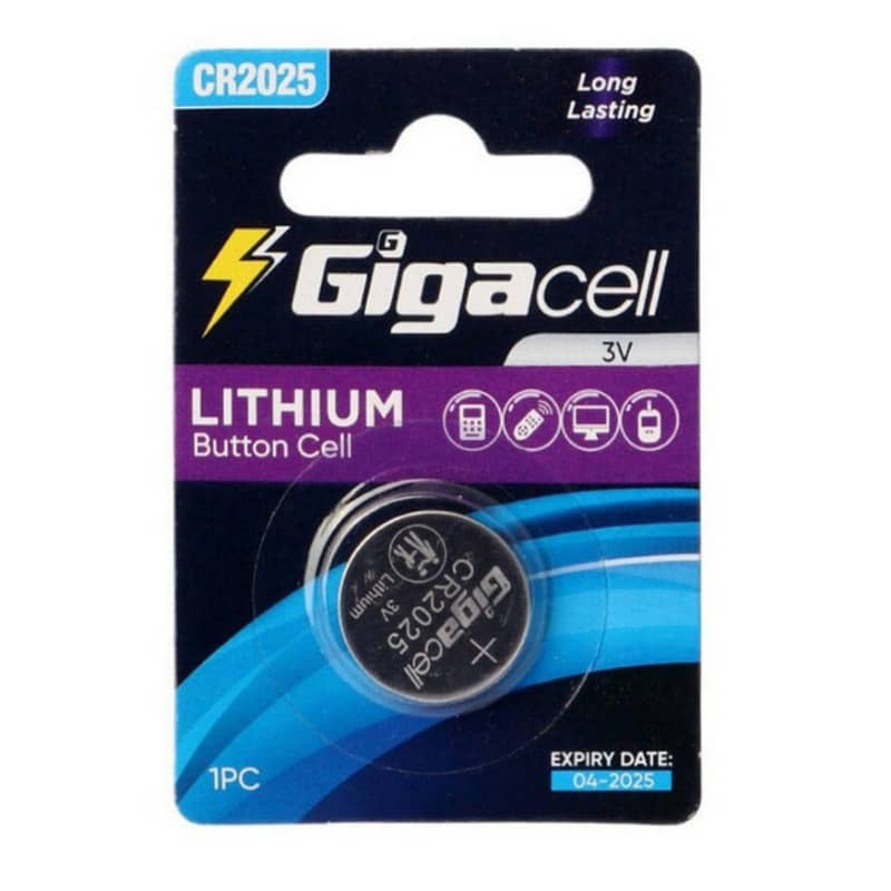 باتری سکه ای گیگاسل Gigacell مدل CR2025- ولتاژ 3 ولت لیتیومی : جریان پایدار برای دستگاههای کممصرف.